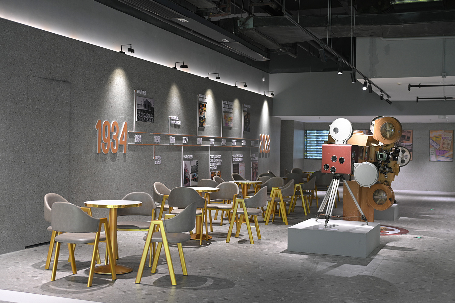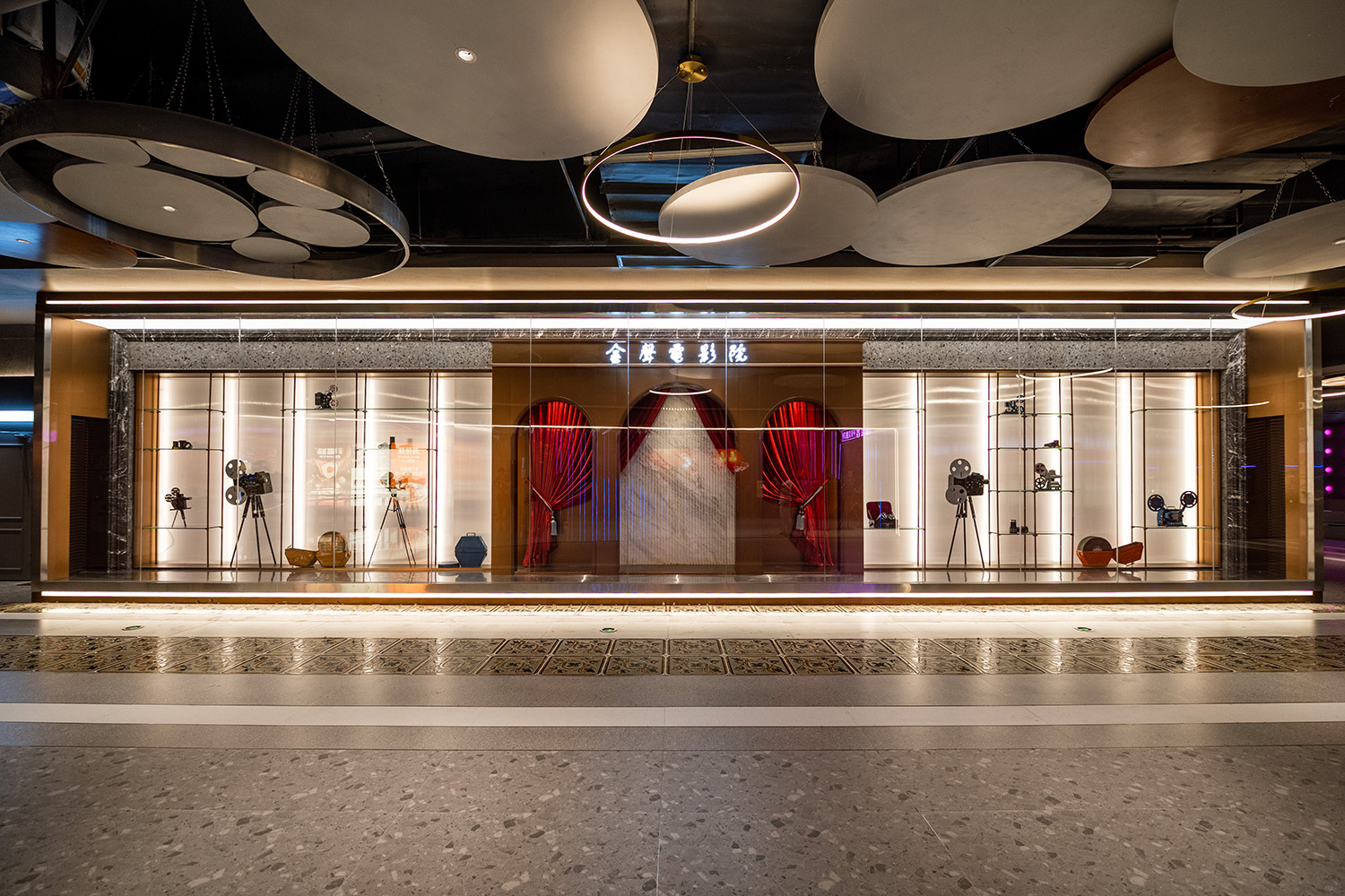 金聲電影院建成于1934年,舊址位于廣州西關(guān)老城區(qū)恩寧路,影院建成后,曾轟動(dòng)一時(shí),當(dāng)時(shí)戲院占地面積2千多平方米,曾稱為“全市影院中之最宏偉者”,是著名綜合娛樂場所。同時(shí)也是廣州第一家有冷氣的影院,坊間流傳:“人皆苦炎熱,我愛金聲涼”的名頭便是由此而來。“新金聲”的整體布局由“重現(xiàn)金聲”(影廳區(qū)域)“藝術(shù)金聲”(公共區(qū)域)“創(chuàng)意金聲”(大堂區(qū)域)三部分構(gòu)成。在籌備團(tuán)隊(duì)的精心策劃下,于影院內(nèi)陳列放置了金聲電影院舊址的騎樓裝飾,并將影院的7個(gè)影廳分別以7座大家耳熟能詳?shù)睦献痔?hào)影院命名,他們分別是:中華、樂善、明珠、新華、新星、長壽、美華。這一個(gè)個(gè)陪伴了廣州市民童年歲月的老字號(hào)影劇院,將以這種特殊的方式得以重生,在“新金聲”的懷抱中,用光影續(xù)寫新的篇章。在公共區(qū)域的裝修設(shè)計(jì)上,影院結(jié)合廣府文化元素,參考舊址外立面的建筑特色,利用現(xiàn)代設(shè)計(jì)手法,打造極具西關(guān)特色的電影藝術(shù)空間。為更好體現(xiàn)“人皆苦炎熱,唯有金聲涼”這一句曾家喻戶曉的美譽(yù),影院大堂通過玻璃、鏡面、亞克力等材質(zhì),使影迷在進(jìn)入瞬間開始便能感受到金聲電影院所帶來的歷史文化的厚重感。在公共區(qū)域,通過“策展+”的方式以“百年金聲”為常態(tài)展覽主題